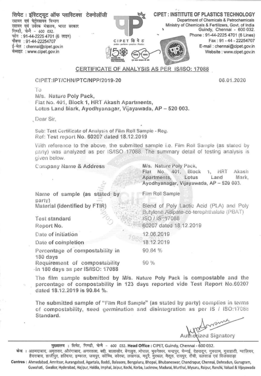 MANUFACTURING & MARKETING AND SELLING OF COMPOSTABLE CARRY BAGS/PRODUTS